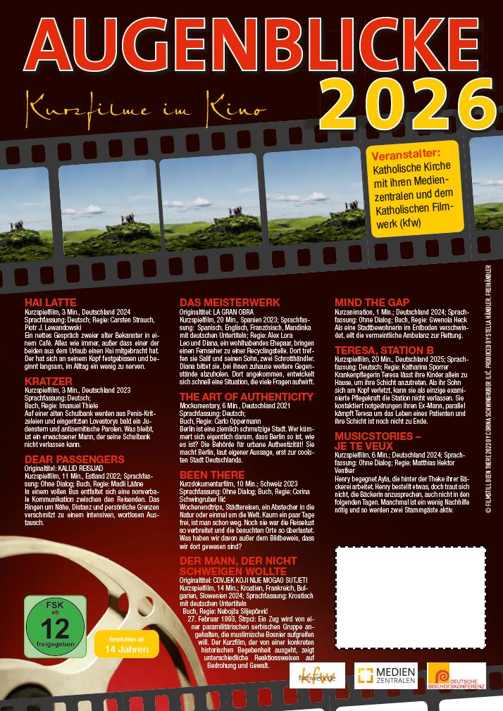 Dazu laden wir Sie mit den AUGENBLICKEN – Kurzfilme im Kino, gefördert durch die Deutsche Bischofskonferenz und in Zusammenarbeit mit den Katholischen Medienzentralen,